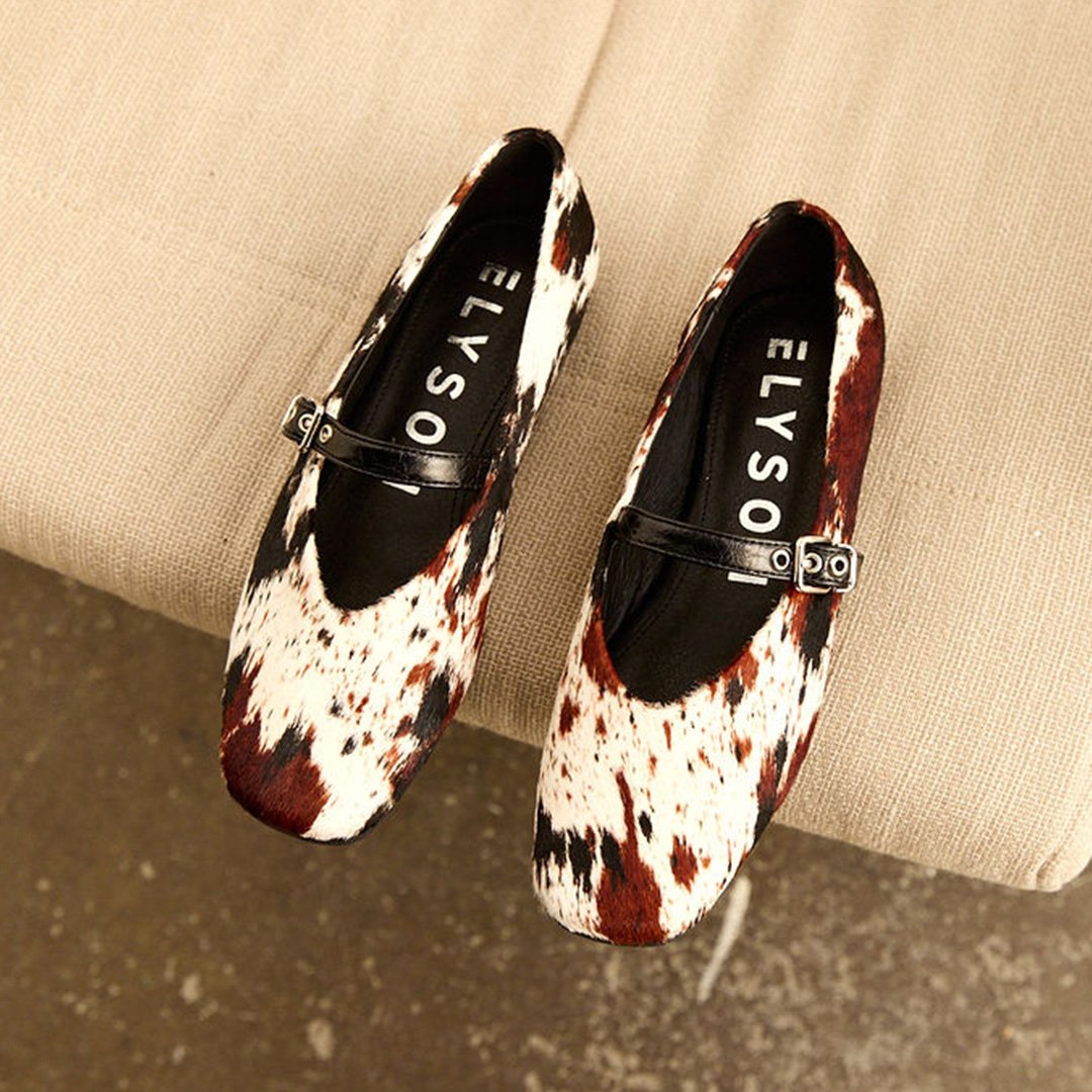 From the Elyson Collection, this fun ballet flat blends timeless femininity with modern edge. Designed in an on-trend silhouette with a flattering bar strap across the arch, it delivers both style and subtle support.