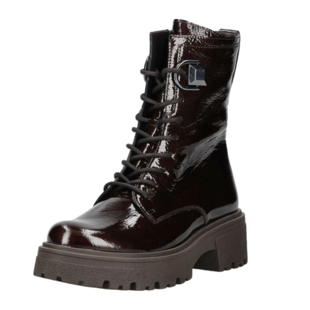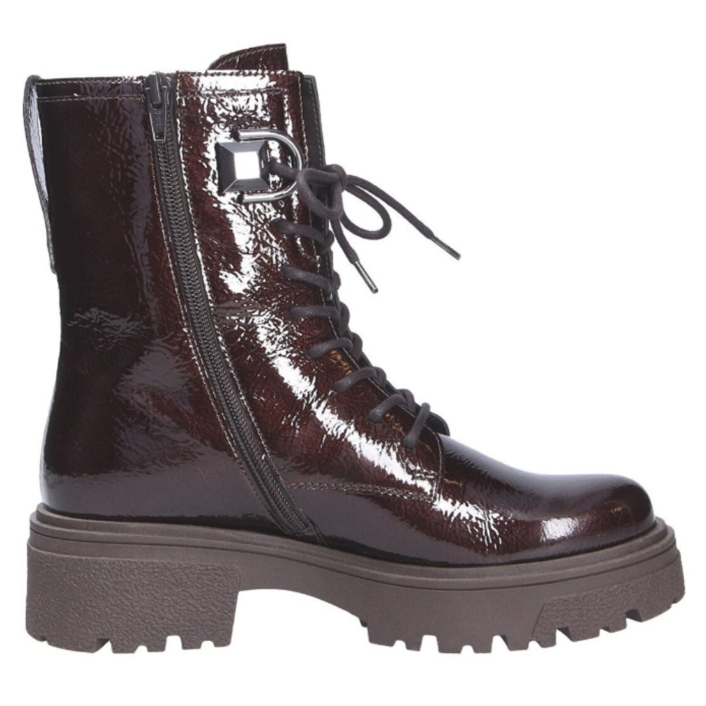 Step out in confident style with Gabor Freya in Brown Patent. This modern combat-style boot blends bold design with everyday comfort, featuring a sleek brown patent finish that adds a polished edge to any outfit. With its lace-up front, side zip and supportive construction, it delivers both style and practicality for all-day wear. Whether you're dressing up casual looks or adding attitude to smarter outfits, this versatile boot is a standout choice.