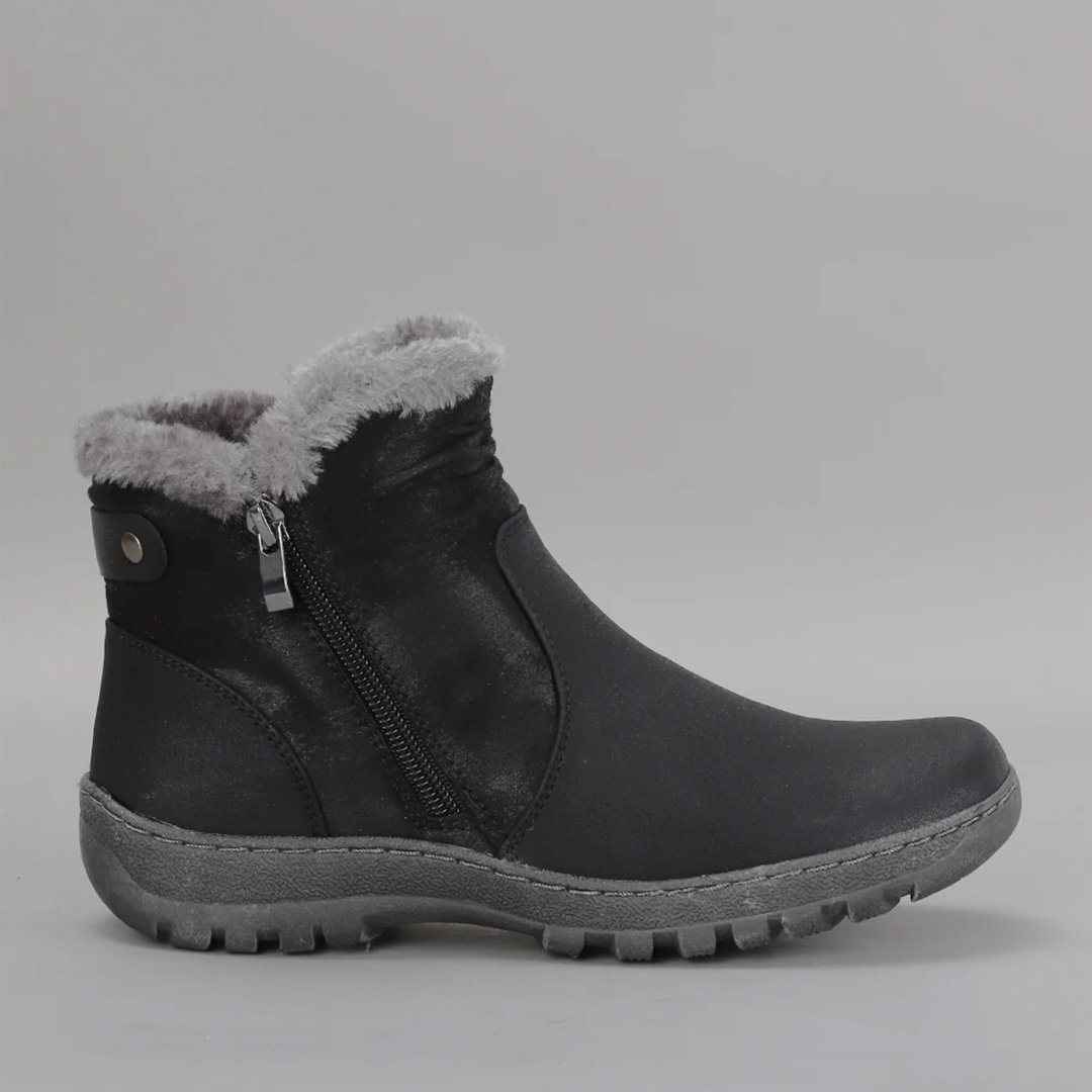 Crafted from quality non-leather materials, the Ginger features a classic round toe and a comfortable 30mm heel for subtle elevation and all-day wearability. The soft faux fur inner collar adds a touch of warmth and luxury, while the twin zip detail allows for easy on-and-off access. Finished with a durable non-slip grip sole, this boot is designed to keep you steady and comfortable through the colder months.