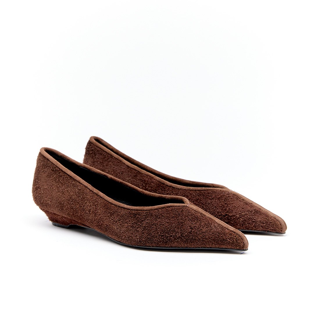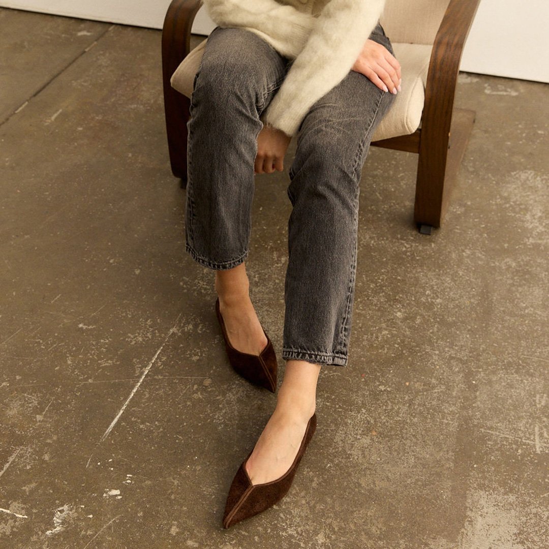 The sharply pointed toe enhances its feminine appeal, creating a sleek, flattering line that feels both polished and directional. Crafted in rich chocolate suede, Jude taps into the season’s love of deep, warm tones. Both colourways feature a slightly longer pile suede, adding texture and that subtle luxe finish that instantly elevates any outfit.