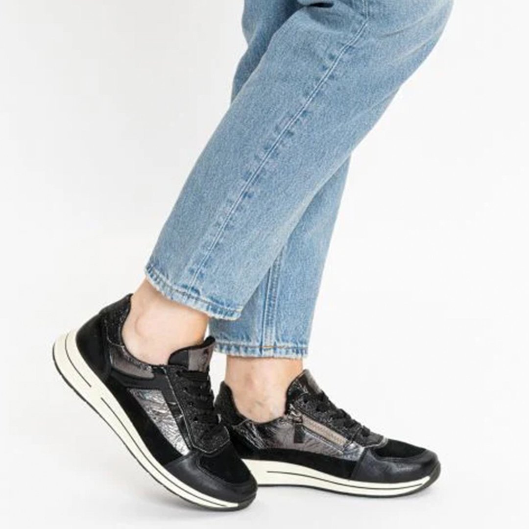 With a breathable terry lining, H wide fit to reduce pressure, and a zip-and-lace design for easy wear, it’s the perfect everyday shoe. Finished in a modern athleisure style, it pairs effortlessly with denim or leggings.
