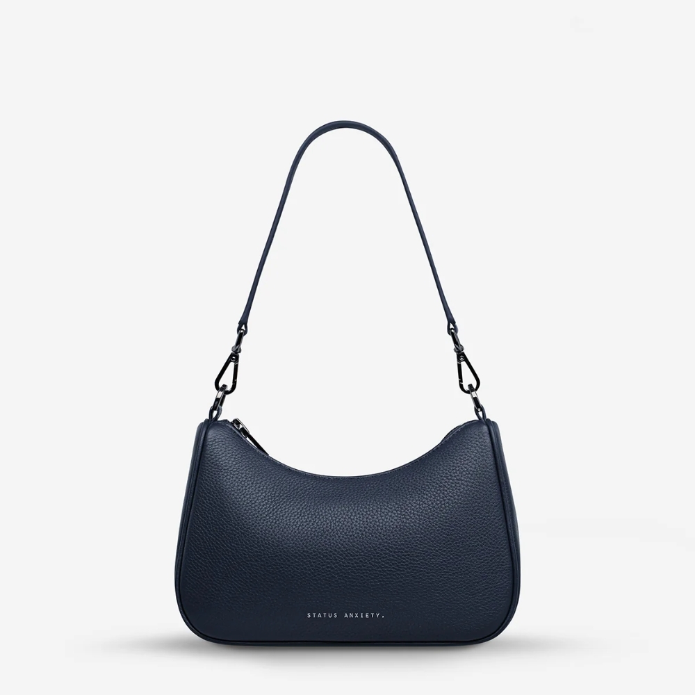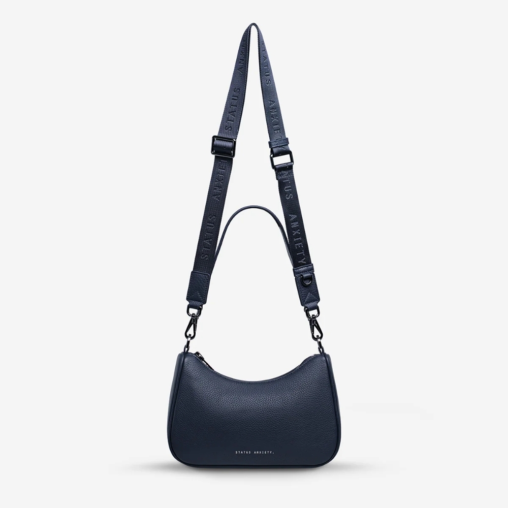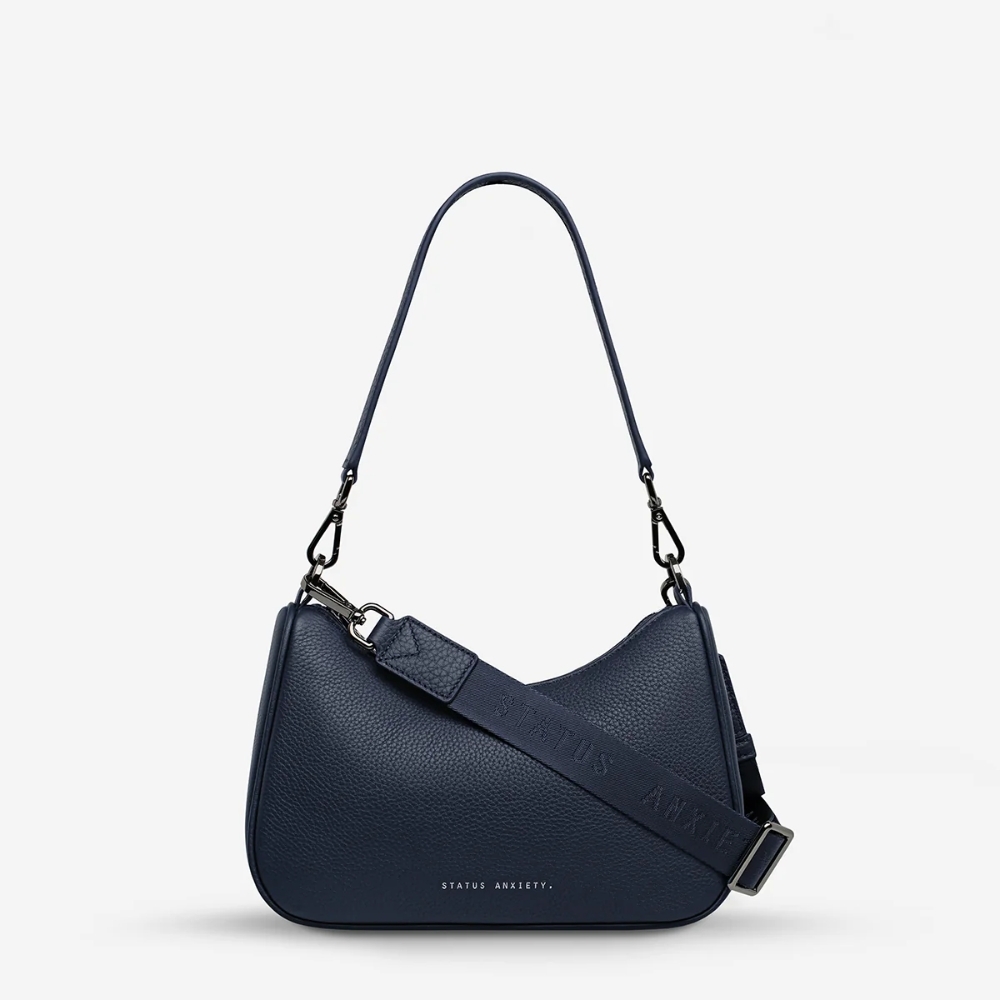 Key Features:– Premium soft shrunken pebble leather construction– Structured, minimal silhouette– Dual adjustable straps for shoulder or crossbody wear– Secure top zip closure– Spacious interior for daily essentials– Internal pocket for organisation– Minimal hardware for a clean finish– Custom Status Anxiety lining and signature detailing– Designed to soften and age beautifully over time