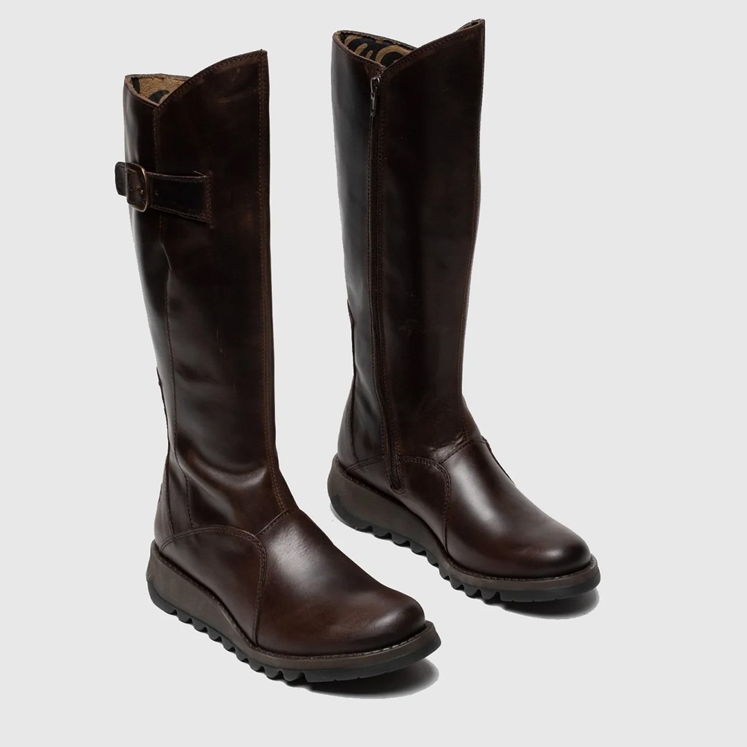 Fly London Mol 2912 – Stylish Waxed Leather BootStep out in confidence with the Fly London Mol 2, a waxed leather boot that perfectly blends modern style and everyday comfort. Featuring a buckled calf, inside zip, and the embossed Fly emblem, this boot is as fashionable as it is practical. The 3.5 cm wedge heel and moulded TR rubber sole provide stability and effortless wear.