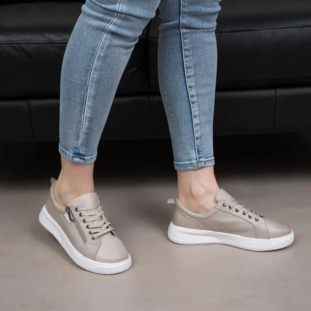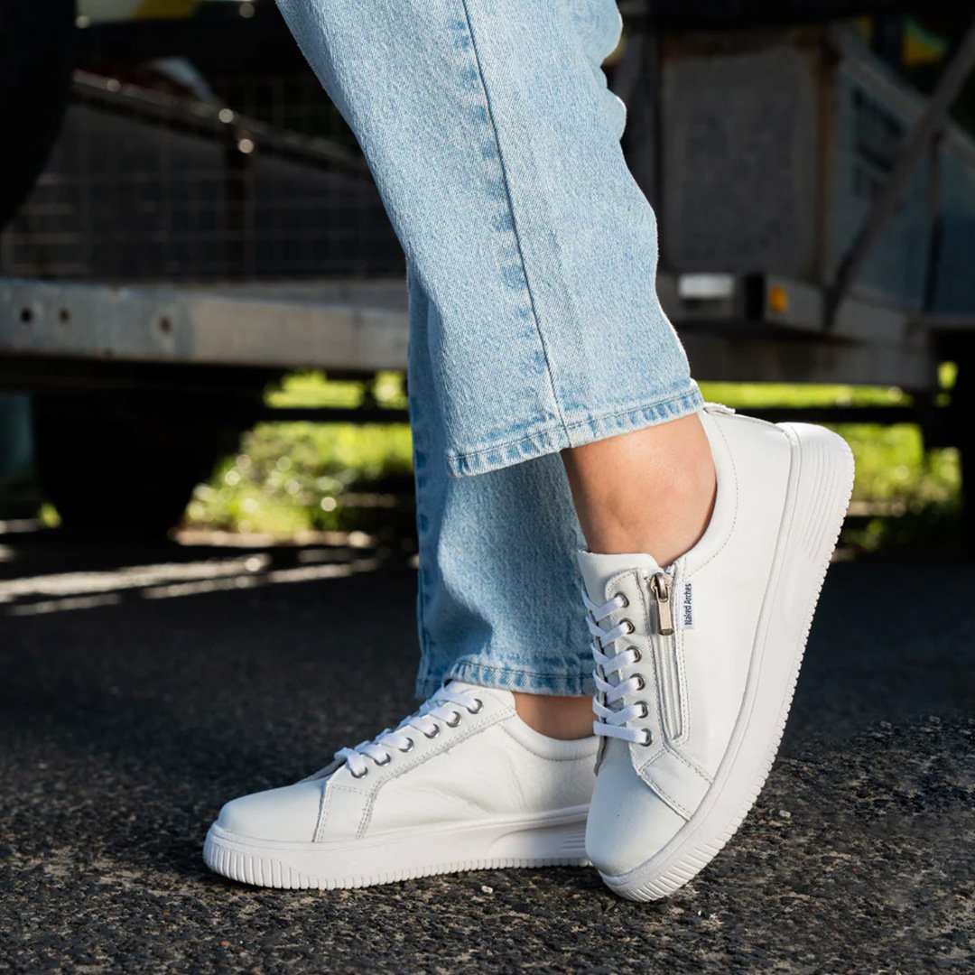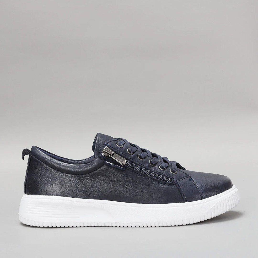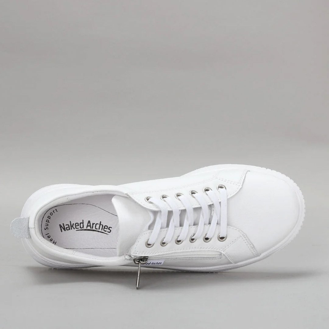 Step up your everyday style with the Nelly sneaker by Naked Arches, a best-selling favourite loved for its perfect blend of fashion and comfort. Designed to keep you feeling light on your feet, Nelly features a sleek leather upper with slender cord laces and a functional zip trim for a modern, easy-to-wear look, all set on a subtle platform midsole for added lift.