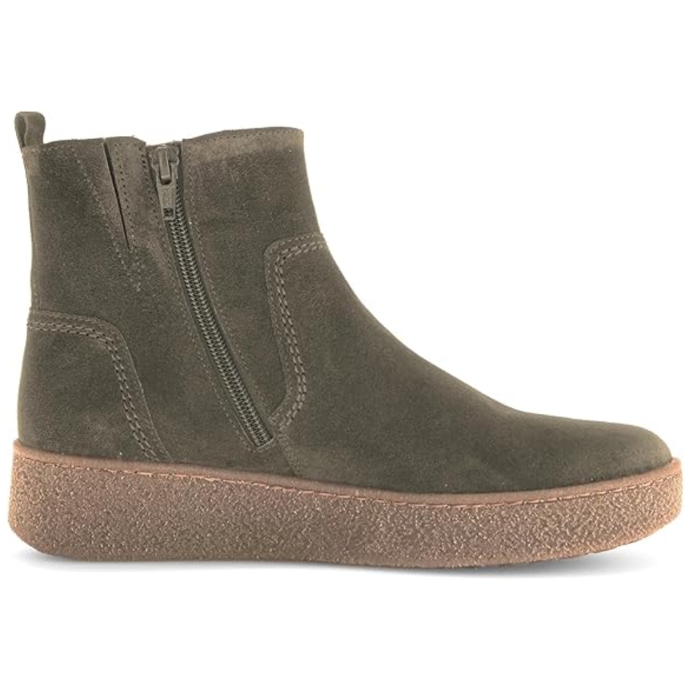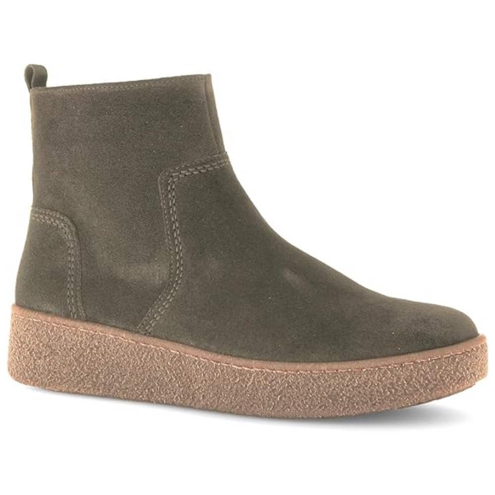 The Gabor Nova ankle boot in Olive Suede is a stylish and practical everyday essential, designed with a modern combat-inspired feel. Crafted from soft suede in a versatile olive tone, it features a lace-up front for a secure, adjustable fit, complemented by a convenient inner side zip for easy on and off. A subtle buckle detail adds a refined finishing touch, while the sturdy block heel and flexible sole ensure comfort and stability throughout the day.