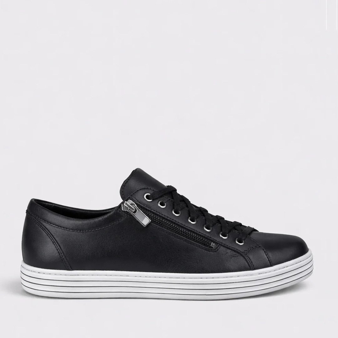 Featuring both lace-up fastening and convenient side zip access, the Unity allows you to set your perfect fit once and then easily slip the shoes on and off. Ideal for casual outfits, travel, or busy days on your feet, this stylish leather sneaker delivers comfort, practicality, and effortless wearability.