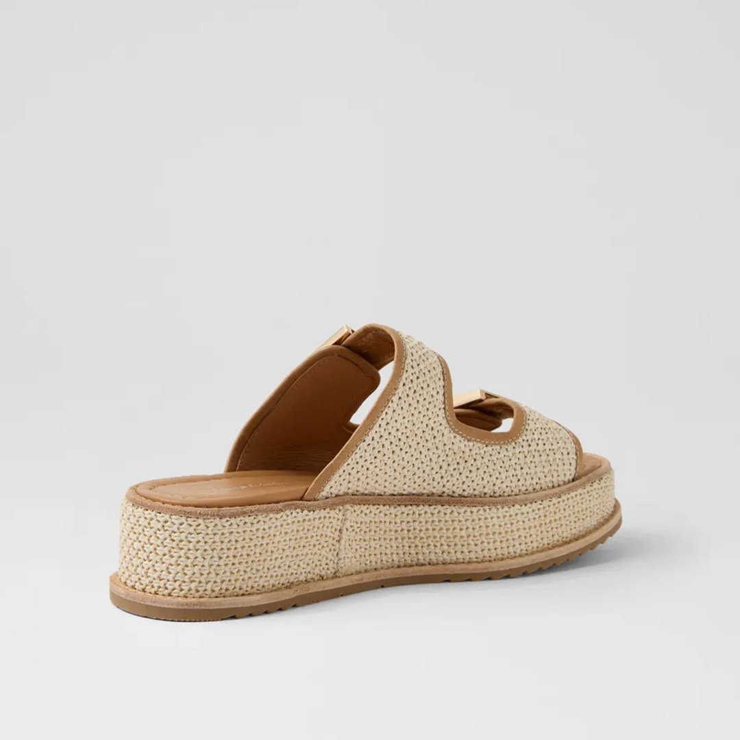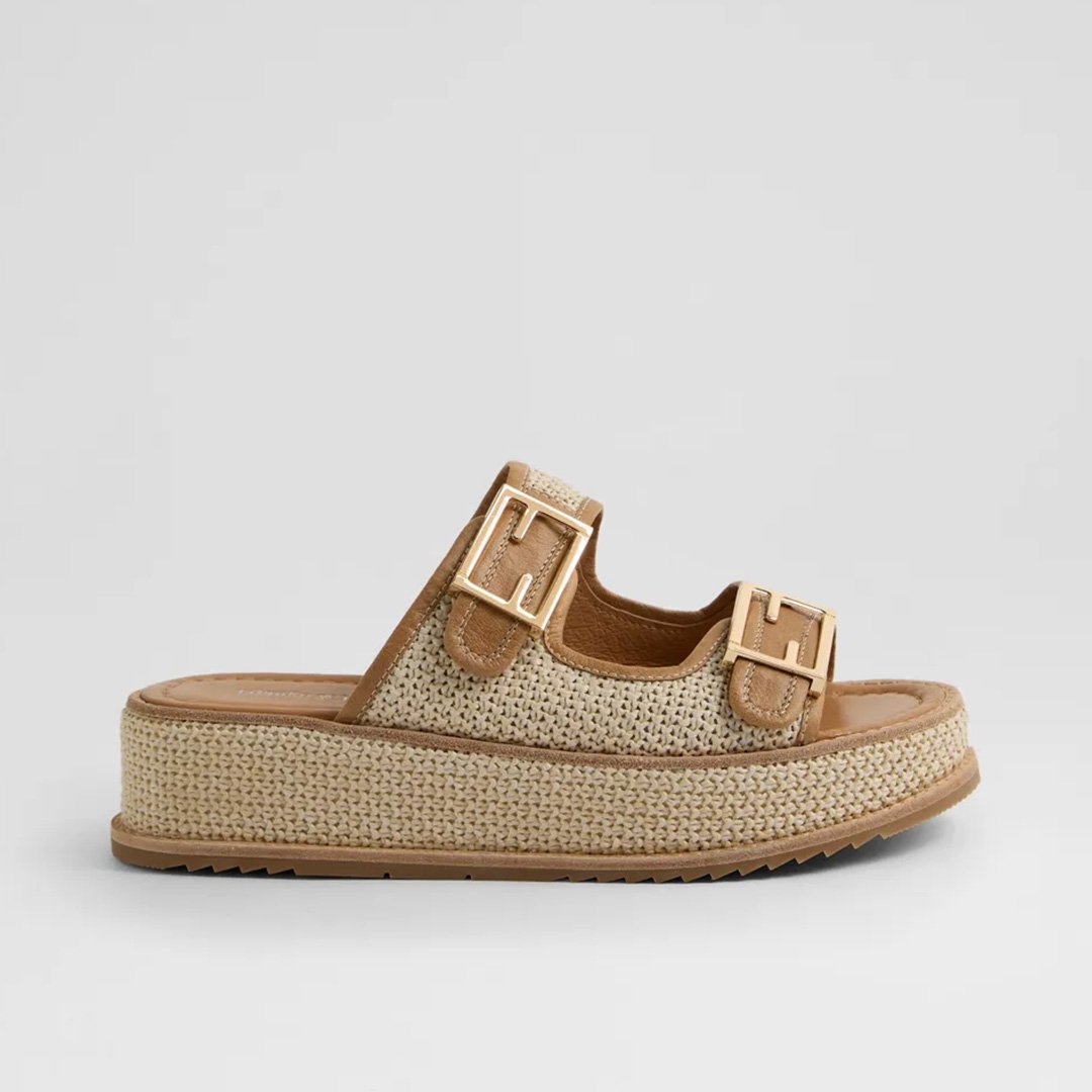 by Django & Juliette. Crafted in premium leather, this elevated slide features a woven texture, subtle metal hardware, and a supportive 4.8cm platform sole. The hook-and-loop closure ensures a secure fit, while its minimalist design pairs beautifully with everything from flowy dresses to tailored shorts. A classy summer essential with just the right lift.