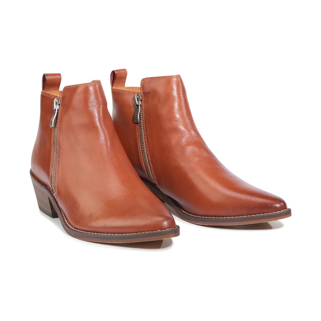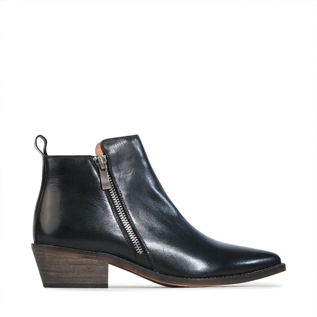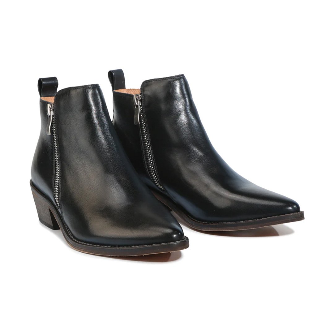 Twin metal side zipsfor easy on-and-off wear, adding a modern edge to the sleek ankle boot design.